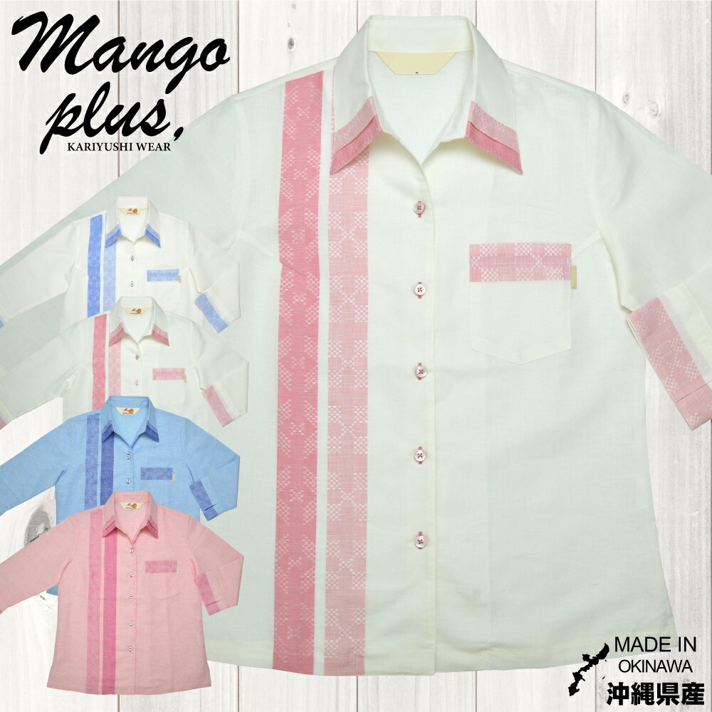 【57%OFF 】 かりゆしウェア 先染め首里織り風 スキッパー 七分袖 | レディース かりゆしウェア かりゆし 結婚式 シャツ 大きいサイズ アロハシャツ リゾート 沖縄 お土産 MANGO PLUS マンゴ プラス プレゼント ビジ