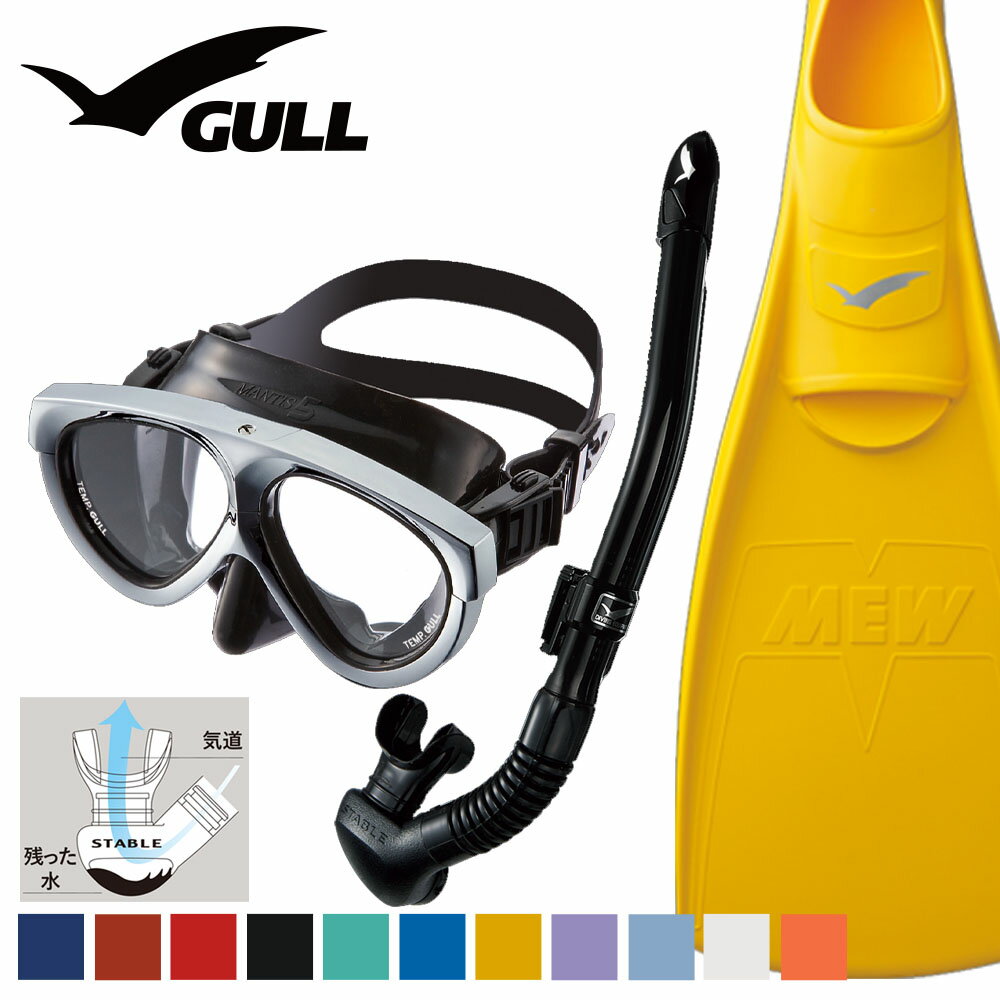 GULL 軽器材セット ミュー マンティス 5 カナールステイブル ダイビング マスク フィン シュノーケル セット 軽器材 3点セット ダイビングマスク フルフットフィン スノーケル スキューバダイビング 軽器材 セット 【mantis5SV-canalstableBK-mew】
