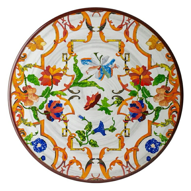 サイズ φ33xH0.6cm 素材 メラミン樹脂(BPA FREE) 耐熱温度 80℃ 生産地 中国 備考 ■電子レンジ : 不可■オーブン : 不可■食器洗い器はご使用できます。(変色する場合がございますのでご注意ください) イタリアはフィレンツェの名家出身のデザイナー、Marioluca GIUSTI (マリオルカ ジウスティ)監修のアンダープレート・コレクション。鮮やかな発色とオリエンタルな雰囲気漂う洗練されたデザインのアンダープレートは、食卓に特別感をプラス。ディナープレートの下のチャージャーに、または1枚でフラットプレートとしてトレーとしても活躍。樹脂製なので割れる心配もないので、大勢で集まるシーンやアウトドア・パーティーにもぴったりです。 マリオルカ コレクションにスタイリッシュなアンダープレートが加わりました。洗練されたイタリアンデザインが、食器やテーブルを華やかに彩ります。 美しく鮮やかな磁器絵皿の風合いを持っていますが、高品質のメラミン樹脂製で、キズが付きにくく、割れにくいので、ご家庭でも、ビーチやピクニック、ガーデンパーティーなどアウトドアでも安心してお使いいただけます。マリオルカジウスティ イタリアはフィレンツェの名家出身のデザイナー、Marioluca GIUSTI (マリオルカ ジウスティ)監修のアンダープレート・コレクション。鮮やかな発色とオリエンタルな雰囲気漂う洗練されたデザインのアンダープレートは、食卓に特別感をプラス。ディナープレートの下のチャージャーに、または1枚でフラットプレートとしてトレーとしても活躍。樹脂製なので割れる心配もないので、大勢で集まるシーンやアウトドア・パーティーにもぴったりです。