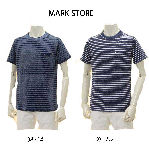 MARK STORE 43203 スラブボーダー インディゴ ポケット Tシャツ スラブ天竺 Tee メンズ 紳士