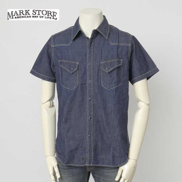 MARK STORE 43103 ウエスタンシャツ 半袖 メンズ デニム スナップオタン MARK STORE サマーシャツ