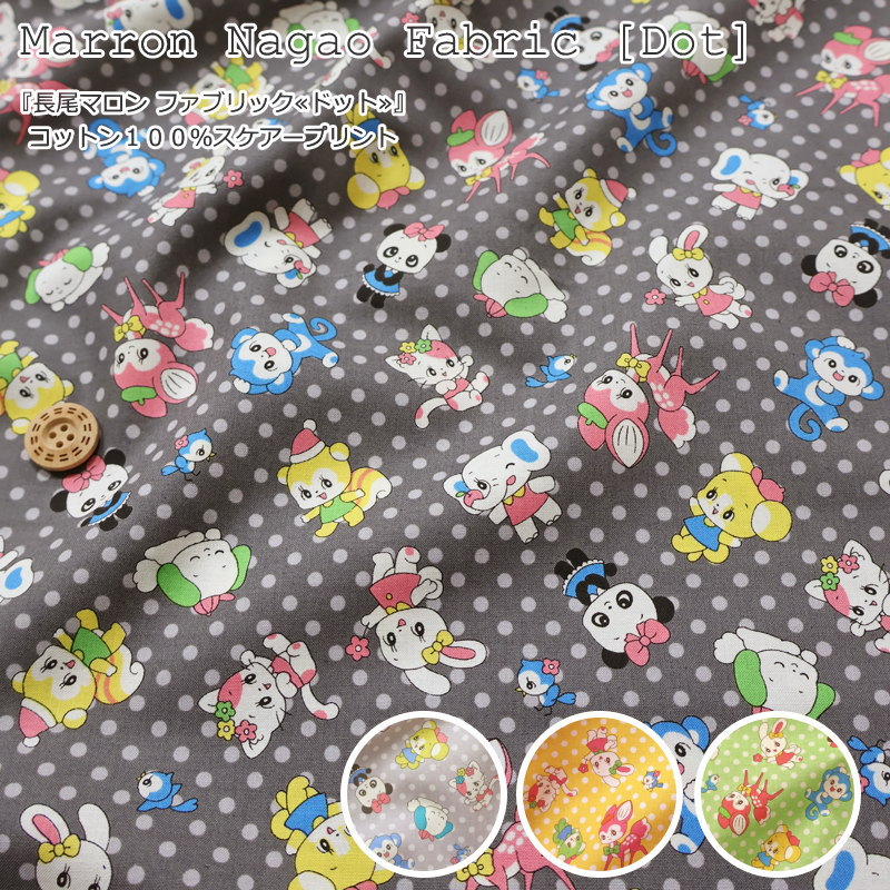 Marron Nagao Fabric『長尾マロン ファブリック≪ドット≫』コットン100%スケアープリント素材:コットン100% 生地幅:約108cm動物/女の子/キッズ/綿/入園/入学/ハンドメイド/手づくり/ウェアー/小物/インテリア/