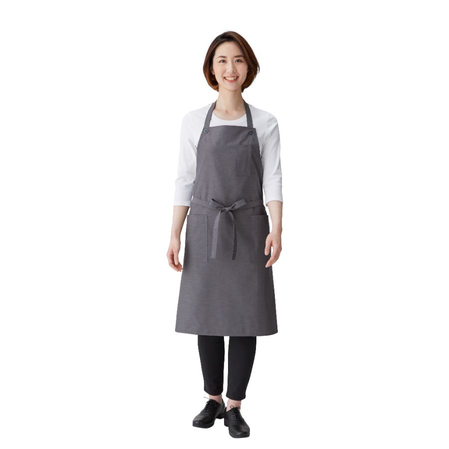 [サイズ] F(フリー) 前中心丈:90/腰回り:85/裾回り:85cm [色] ブラック・ネイビー・ブラウン・グリーン・レッド・ダークネイビー・ロイヤルグレー・ワイン・マロン・ホワイト・ミディアムブルー・ボルドー [素材] 交織ポプリン [混率] ポリエステル85%・綿15% [ポケット] 両脇ポケット・胸ペン差ポケット ※日本製 シンプルで美しいシルエット、お手入れも簡単な胸当てエプロン。 シンプルなデザインで型崩れしにくいシルエット。ポケットは左右に各1つ、左胸にペン差ポケットが付いています。首廻りはボタンで2段階に調整可能。軽量でシワになりにくく、乾きも早いので、頻繁にご使用される方に最適です。 KOEI(興栄繊商)のエプロンは、美しく、心地良く、使いやすく。 働く人を、とことん想うエプロン。 1.日本製へのこだわり 創業からずっと、メイド・イン・ジャパン。 つくり手の都合ではなく、着る人のことをいちばんに想う、ユニフォームづくりを。創業から半世紀近く。そのあいだに時代は大きく変わり、多くの衣料品メーカーが、コストと効率を求めて海外工場に生産を移しています。そんな中、私たちはずっと素材も、縫製も、日本製にこだわり続けてきました。細部にまで心を行き届かせた、日本の職人ならではの伝統的なものづくり。きょうも一つひとつ丁寧に、美しさと丈夫さ、機能性を備えたユニフォームを仕立て、お届けしています。 2.素材へのこだわり 上質な生地だけが与えてくれる、誇りと安心。 火や油、水濡れや食品による汚れ、汗、色落ち・・・ユニフォームを取り巻く環境には、衣服にとっても、それを着る人にとっても気になる心配事がいろいろあります。だからこそ私たちは、日本を代表する紡績メーカーや染色加工場と長年にわたり改良を重ね、厳選された生地にさまざまな特殊加工を加えて、ユニフォームづくりに活かしています。上質かつ高機能な素材は、汗の臭いや細菌、汚れを防いで清潔さを保つうえ、ひとつ上の着心地で、気持ちに誇りと張りを与え、働く姿をさらに輝かせていきます。 3.縫製へのこだわり 腕ききの職人たちと紡いできた、確かな手仕事。 日本には、腕の良い縫製職人がまだ何人も活躍していて、熟年の技をふるい、丁寧で、確かな仕事をしています。私たちは、優れた職人たちとのつながりを大切にしながら、素材の特性を活かすための裁断手法や、縫い目の美しさも仕事着としての強さも追及した、独自の仕立てを編み出してきました。ほつれや破れを防ぐための追加縫製など、細部まで妥協なく縫い上げ、品質を磨き上げています。 4.デザインへのこだわり 現場の声から生まれたアイデアを、かたちにする。 ユニフォームをデザインする、というよりも、働く人が美しく見えるかたちや、もっと良い着心地、快適さをデザインしたい。そんな想いのもと、後ろ姿がキレイに見えるスマートヒップなど、独自のスタイルをご提案しています。一度むすぶとズレにくく、快適に仕事をつづけられる腰紐や、お手入れがラクなイージーケア素材、便利なペン差しポケットや豊富なカラー展開など、現場を観察し、働く人の声に耳を傾けながら、日々さまざまな工夫を重ねています。 腰のまえで、ぎゅっと紐をむすぶ。 仕事に向かう、スイッチが入る。「きょうも一日、がんばろう」 — 誇りをもてるエプロンで、はたらく人の、かがやく笑顔を —