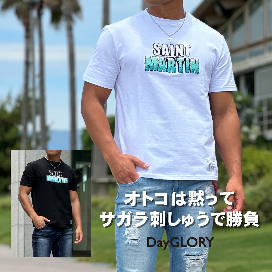 Tシャツ メンズ 半袖 綿100% 白tシャツ おしゃれ メンズTシャツ 刺繍 柄 ブランド カラー ペアルック カップル 夏 夏服 春服 春夏 服 ストレッチ SAINT MARTAIN TEE