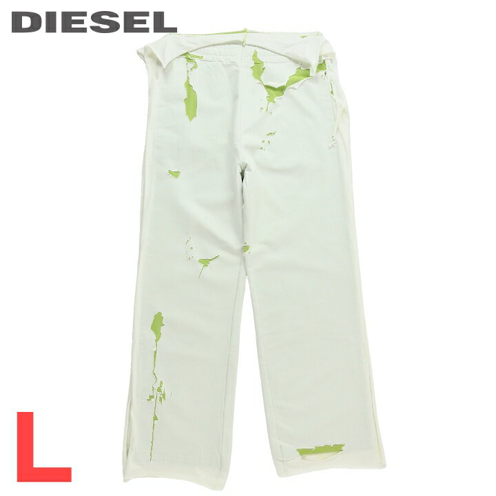 ■DIESEL ディーゼル メンズ■ウエストゴム ドロスト ピールオフ加工 ダメージ加工 スウェットパンツ【P-MARTAINOFF】【サイズL】【ホワイト×ライトグリーン】die-m-p-f8-0hw 《メーカー希望小売価格69,300円》
