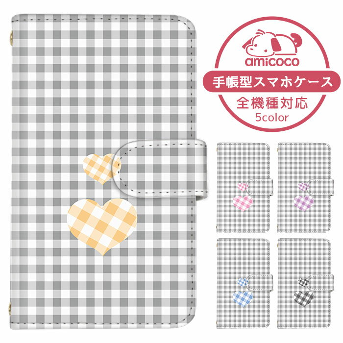 スマホケース 手帳型ケース 全機種対応 Xperia ケース 多機種対応 すまほけーす ショルダー タイプ 携帯ケース iPhone 14 Pro Max iPhone SE2 チェック柄 ハート グレー 淡色 ケータイケース あんしんスマホ arrows SHG10 F-42A SO-41B 父の日 磁石 iPhone XS Max Xiaomi