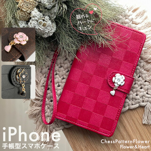 iPhone17 ケース iPhone Air 16 15 14 13 12 Pro 手帳型 チェスパターンフラワー チェック iPhone11 iPhone12 iPhone13 12 mini 16 Pro Max Plus iPhone SE 第3世代 iPhone XR XS XSMax X iPhone 8 8Plus 7 7Plus スマホケース アイフォーン アイフォン