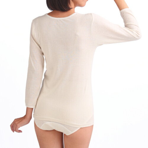 【こだわりの品】シルクノイル肌着 7分袖スリーマ— シルク100%ババシャツはイヤって言う人もいるけど絹の肌着が体と肌に一番なんです7分袖縫縫い糸もシルク100% 日本製/毒だし/妊婦服/冷え取り/保湿/保温/神戸生絲/介護肌着/mayuko