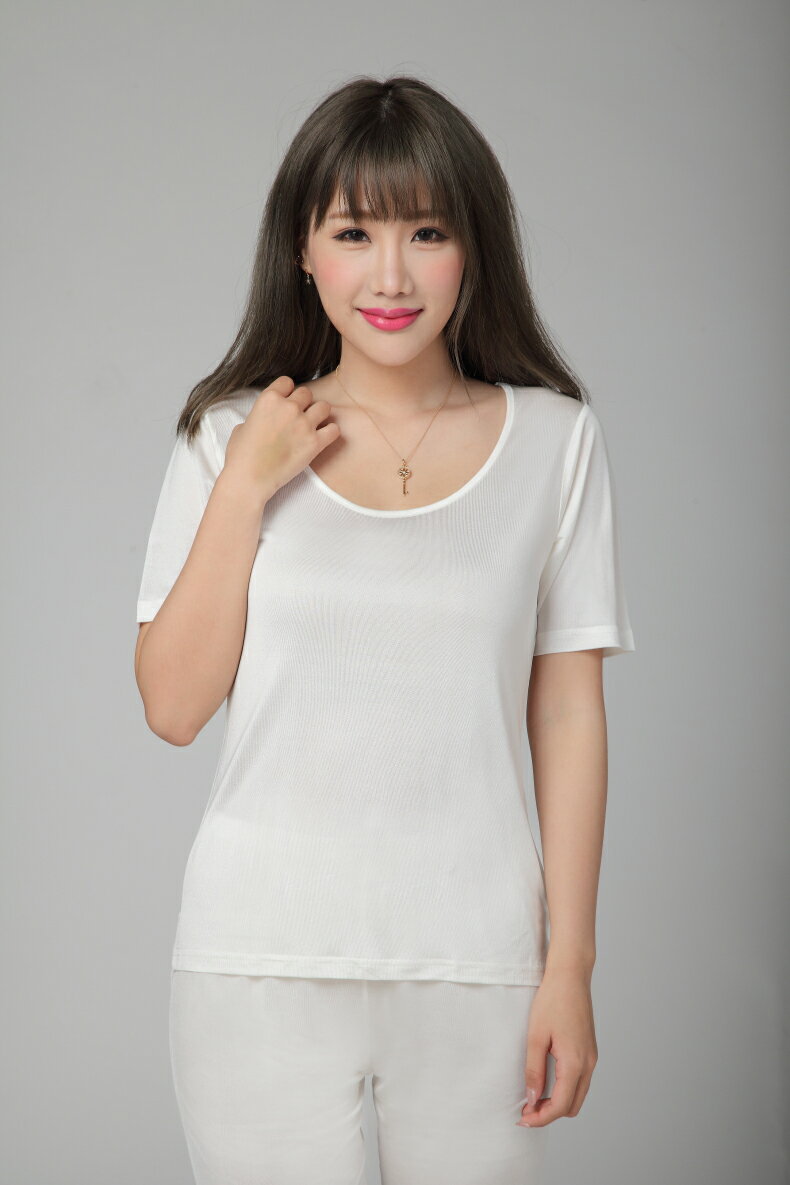 silk underwear 100% Silk Noir short sleeves Gentle and warm to the skin Silk underwear is light and very warm. silk underwear 100% Silk Noir short sleeves Even the sewing thread that touches your skin is 100% silk. So natural you'll forget you're wearing it. Pregnant Women's Clothing / Cold Protection / Moisturizing 参考サイズ表 単位(cm) M L LL 身 長 150〜160 155〜165 160〜170 バスト 79〜87 86〜94 93〜101 ヒップ 87〜95 92〜100 97〜105 ウエスト 64〜70 69〜77 77〜85 おすすめポイント シルクノイル糸は、まゆから生糸(長繊維)を製糸した後のわた(短繊維)をつむいだものです。 サラサラしたシルクサテンとは異なり、シルクノイルは独特の凹凸感でふんわりボディを包みます。 肌にやさしく吸湿性・通気性・保温性に優れたシルクノイルなら夏も冬も一年中快適にお使いいただけます。 今となっては希少な日本製の肌着です。 つむいだシルクのやさしい肌着 吸湿性・通気性・保温性に優れたシルクが優しくからだを包みます。シルク100%、安心の日本製です。 ※生地はもちろん、縫い糸もシルクを使用しています。●素材/シルク100%・天竺 縫製糸/シルク100% (本体のシルク生地は独特の凹凸感のあるシルクノイル生地です) ●日本製 (兵庫県製) ●肌にやさしい無蛍光生地を使用 ・蛍光剤は一切使用していません。 ・レースは使用しておりません。 ・縫い糸もシルクを使用しています。 古来より絹には毒を出す力があると言われています。 痛いところに付けると痛みが治まったり、普段から絹に触れていると肌がツルツル若返ったり、毒出しで吹き出物が消えたりなど・・・ 冷えとりしている方にはお馴染みの健康シルクのご紹介です。 冷えとり健康法を実践している方から口コミで広まった、美容と健康シルク製品です。 シルク生地はめんげんで痒いところに巻いたり畳んで擦ったり…用途いろいろ!! 関節痛や腰痛でお悩みの方も、とにかく天然シルクで体を温めてみましょう。 ゆっくりした時に… 毒出しとして絹製品は、帰宅してゆっくりした時に使ってます。 あと、おやすみの時には、欠かせない逸品です。 身体が楽になります。良い商品をありがとうございます。 腰痛が常にあるので寝るときにもつけてみようと購入しました。 ウール用洗剤で手洗いして大切に使っています。 体をさっても気持ち良く、血流が良くなってクセになっています。 先日mayukoさんの絹手袋を購入して、病人のマッサージに使っています。 全身の血流が良くなって、ぐっすり眠れると好評です。 病室で頻繁に咳が出ていたので、空気清浄機を入れたのですが 完全には治まらず。もしかして肺の冷えが原因では?と思って 試しに胸や背中のマッサージをしたところ、 病院の方も気が付くほど直ぐに咳が減りました。 シルクは昔から肌に良いと聞いていますし、 表面のサラサラ感も効果があるんじゃないでしょうか。 自信をもってお届けします。このシルク肌着はユーザーからの指名買いに支えられている国産の人気商品です。生地は、繭から生糸を取った残りのわたを紡いだシルク紡績糸でもちろんシルク100%さらに縫製糸もシルク100%というこだわり製品。 こうしたことから敏感肌の人たちにも安心して使ってもらっています。よそゆきのツルツルとしたサテンのイメージが強いシルクを、デイリータイプのふんわりとした商品に仕上げています。 神戸生糸株式会社・今井織物株式会社口コミで人気になったヒット商品です 国産品Made in Japan 女性のデリケートなお肌を守る女性は40歳を過ぎると、急激な気温の変化に体が順応しにくくなります 絹の肌着はそんな温度や湿度変化から体調を守る健康衣料として人気急騰! 絹の効果を体感してください。 年配の女性へ贈り物としても人気です ■女性用の参考サイズ M L バスト 79〜87 86〜94 ヒップ 87〜95 92〜100 お客様からのメール紹介 (件名) とても暖かいです。------------------こんにちは シルクのババシャツを注文しました、小川です。 商品無事届き、愛用しております。最初に自分で試してみて確かな暖かさ心地よさを実感し、母親のものを追加注文しました。夕べから急に寒くなりましたが、この下着のおかげで乗り切れそうです。いい商品を、ありがとうございました。 2008/12/05, at 18:43 ■シルクが身体にいい5つの理由■ ● 1・静電気がおきにくい ■体に悪影響を与える静電気。例えばナイロンのストッキングを履くと陰部のあたりに1万ボルトもの静電気が発生。それが生理痛の原因になるという説もあるのです。天然繊維である絹のパンツは吸湿性に富むので静電気が起きにくいのが特徴。女性の下半身を守ります。 ● 2・吸湿&放湿効果バツグン ■体からは1日およそ1リットルの水分が発散されます。絹は綿に比べて約1.5倍もの吸水性があり、また放湿性も優れている繊維、そのためパンツもいつも表面をさらっとした状態に保てます。むれによるかぶれやかゆみに悩ませられる女性にとっては、まさに理想的な下着といえそう。 ● 3・ニオイがつきにくい ■絹は吸水&放湿性に優れてい