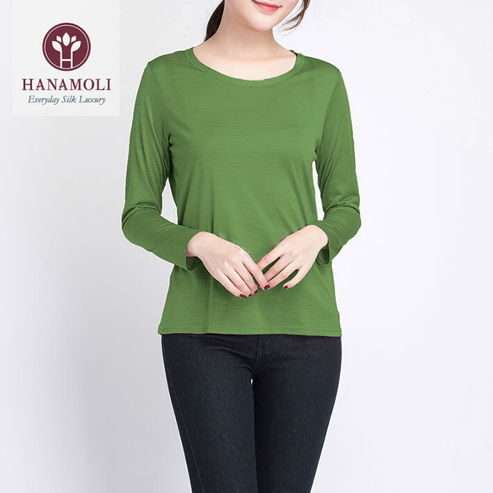hanamori レディース 婦人用 シルク100% 長袖 カットソー MとL カラーが充実しました 春向きのお色をご用意しました お洒落な首元です 無地ニット カジュアル 上品 海外セレブ 冷え対策 保湿 毒だし 部屋着 mayuko silk100% レディース ファッション 上質中国製