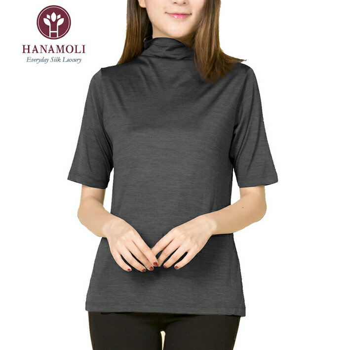 HANAMOLIシルク100% ボトルネック半袖 カットソー M~L フリーサイズ 丈長めで気になるヒップをカバー シックな3色をご用意しました 無地ニット カジュアル 上品 海外セレブ 冷え対策 保湿 毒だし 部屋着 mayuko silk100% レディース ファッション 上質中国製