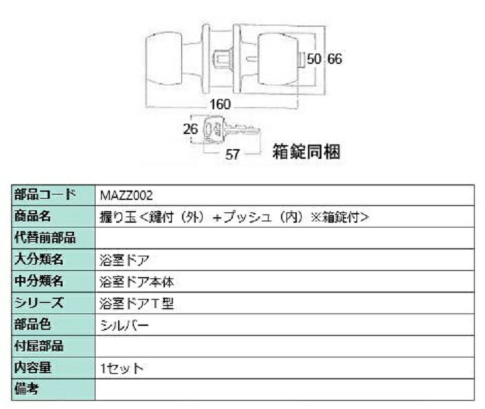 LIXIL リクシル トステム 浴室用 ドア用 握り玉 (非常開錠付) MAZZ001 1SET 注意: 2006年以前は 箱錠ごと交換が必要です。