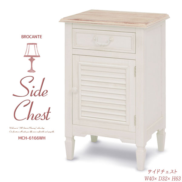 大人可愛い サイドチェスト 【ブロカントシリーズ サイドチェスト ホワイト MCH-6166WH】【送料無料】 木製チェスト 幅40 スリムチェスト 小物収納 ナイトテーブル カントリー風