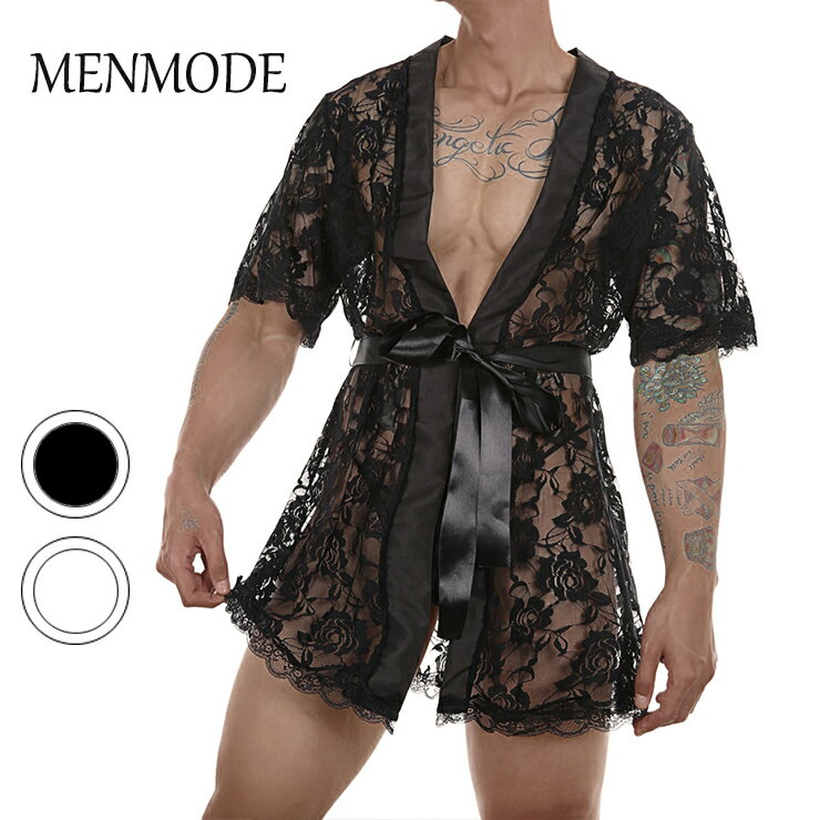 FLORAL LACE PAJAMAS ファッション 男性 パジャマ 柔らか素材 レース 情熱 セクシー メンズ クール 快適 バスローブ 透明 (下着付き)