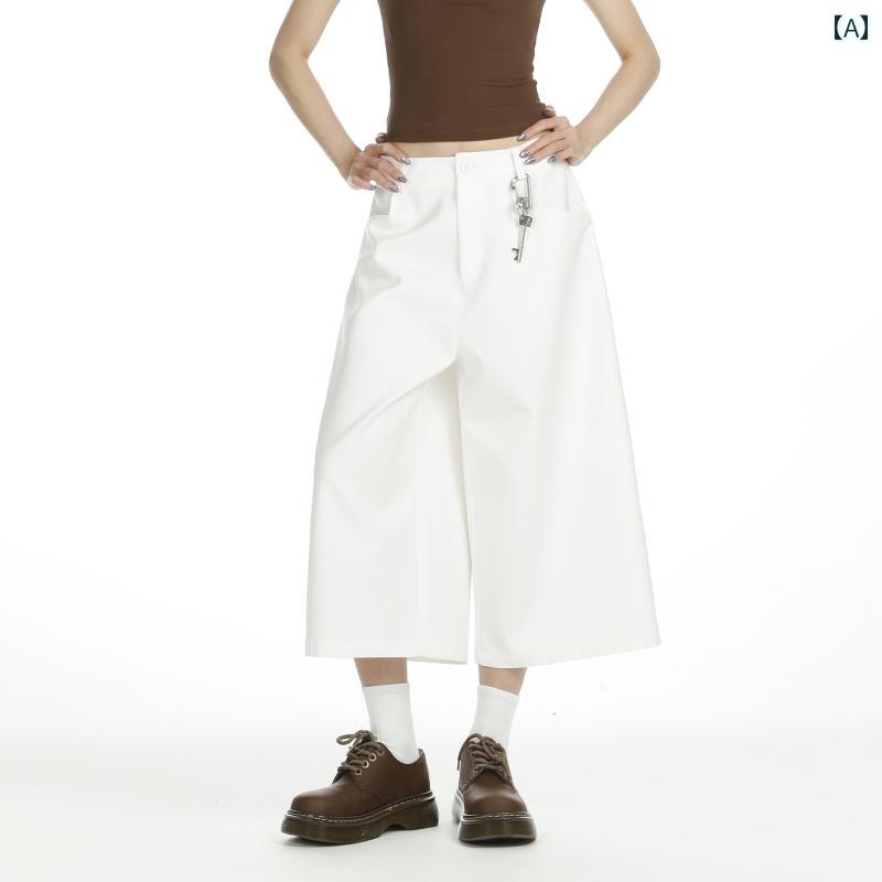ワイドレッグ パンツ レディース ICH MDOE アメリカン ホワイト ストレート カジュアル パンツ レディース サマー レトロ ワイド レッグ スポーツ 7 ポイント