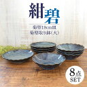 【ふるさと納税】【美濃焼】紺碧 菊型19cm皿×4点・大きめの取り鉢×4点 計8点セット【株式会社カクニ】食器 ブルー おしゃれ [MEF007]