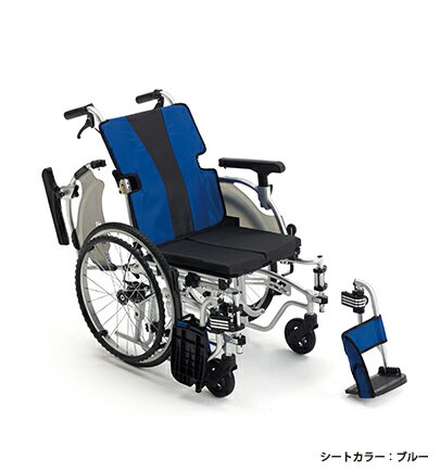 (ミキ) 車椅子 自走式 低床 モジュール MEF-20 座幅調節可能 ノーパンクタイヤ仕様 折りたたみ 座クッション付 肘掛跳ね上げ 脚部スイングアウト 耐荷重100kg 座幅40/42/44cm ブルー/レッド MiKi