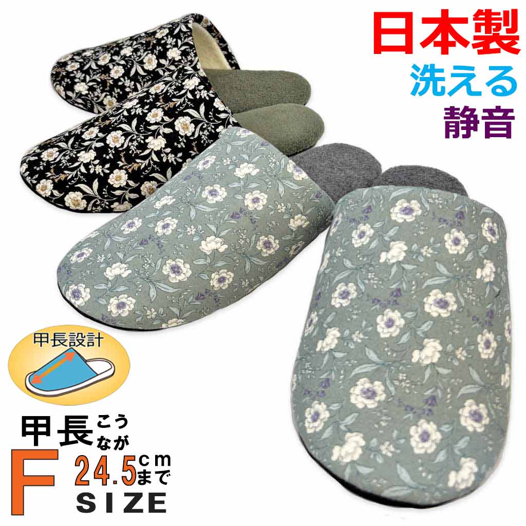 スリッパ オシャレ メランコリーフラワーソフト Fサイズ 約24.5cmまで 日本製 洗える 静音 花柄 フリース 秋冬 暖かい