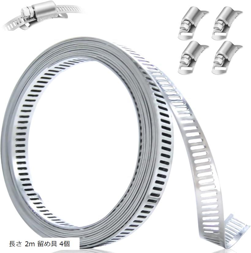 ホースバンド 8mm幅 ステンレス クランプ 自在バンド 長さ 2m 留め具 4個
