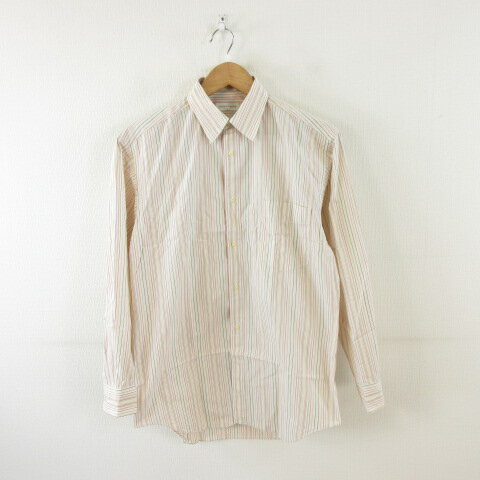 【中古】メゾフォルテ MEZZO FORTE シャツ ストライプ 長袖 白 ベージュ M *A149 メンズ 【ベクトル 古着】 250606
