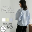 大きいサイズレディース シャツ | 【LUMFORLE produced by My:nia】UV・イージーケア・ストレッチ 袖ボリューム シャツ ストライプ 無地 _ ブラウス トップス LL 3L 4L 5L 6L 春 春物 春服 ぽっちゃり ゆったり カジュアル ナチュラル プラスサイズ [171 531342]