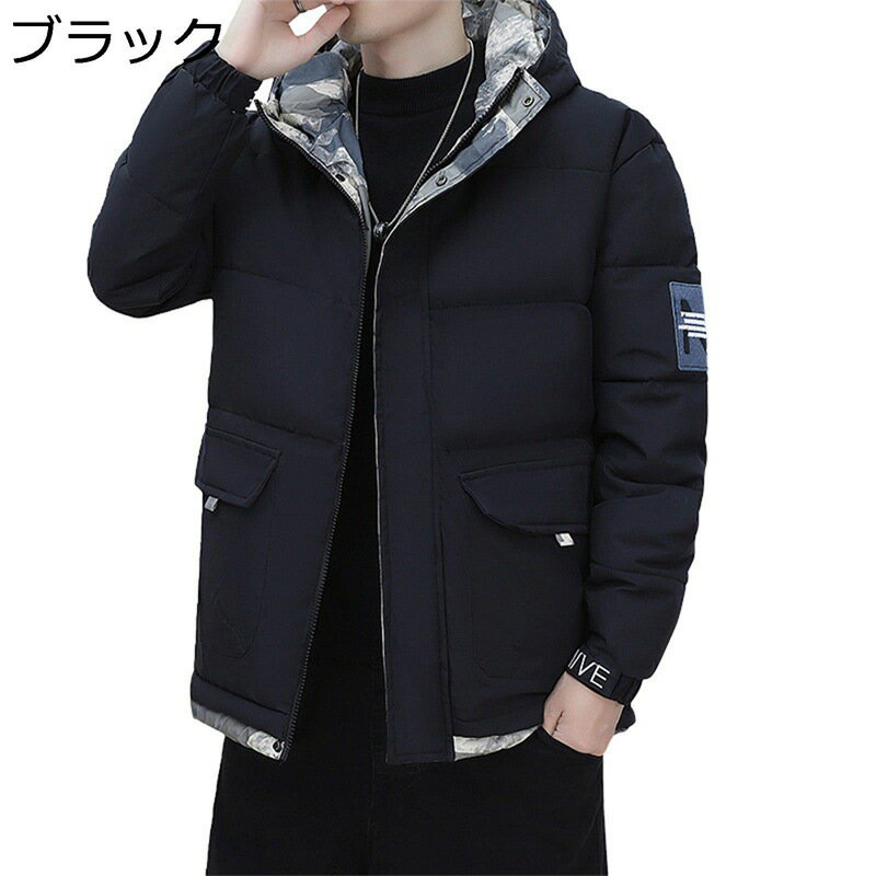 ダウンコットンジャケット 中綿ジャケット メンズ 秋冬 大きいサイズ ショート丈 中綿コート 厚手 おしゃれ 重ね着風 フード付き 防寒対策 保温 カジュアル あったかい 冬用コート 冬服