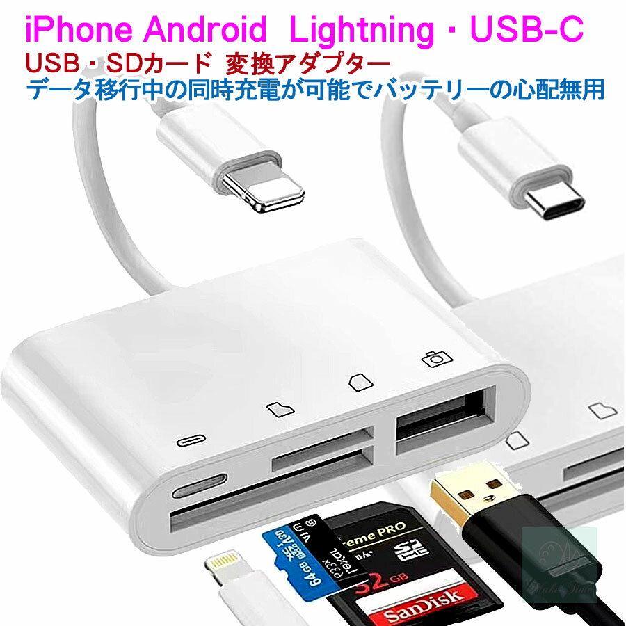 変換アダプタ iPad iPhone Lightning USB-C アイフォン アンドロイド USBメモリ microSD SDカード iPhone16/15/14/13/12 SE2 USB フラッシュ メモリ OTG 写真 動画 双方向 転送 MIDI iOS 充電