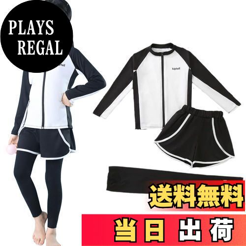 【送料無料】[MIIFIT] 水着 キッズ 女の子 男の子 子供用 キッズ水着 ウェットスーツ 長袖ラッシュガード レギンス ハーフパンツ 上下セット セパレート 紫外線対策 日焼け止め 水泳 海水浴 海遊び 夏 人気 プレゼント 色:ファスナー付き-ホワイト、サイズ:XL