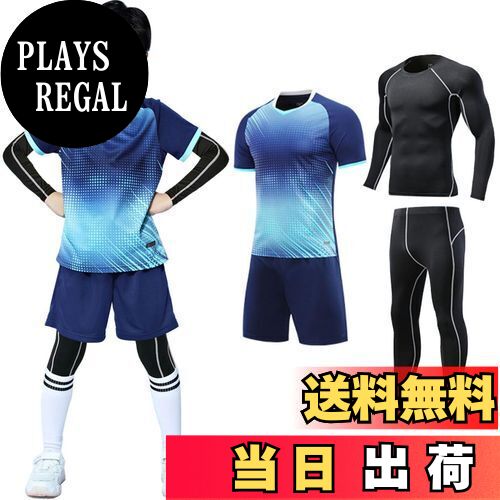 【送料無料】[MIIFIT] 子供服スポーツウェア コンプレッションウェア キッズ 上下セット長袖シャツ 半袖シャツ ハーフパンツ タイツ 通気防臭 トレーニングウェア ランニングウェア男女兼用 春夏秋冬 色:#6-あおい-4個セット、サイズ:S
