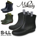 レインブーツ 長靴 レディース ショートブーツ サイドゴア 雨靴 防水 おしゃれ レインシューズ 雨 梅雨対策 雪 履きやすい ブランド ミレディ milady ML636 ブラック カーキ 梅雨対策