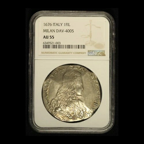 1676年 イタリア 1 フィリッポ・ミラノ DAV-4005 NGC AU55 - 送料無料(アメリカ)