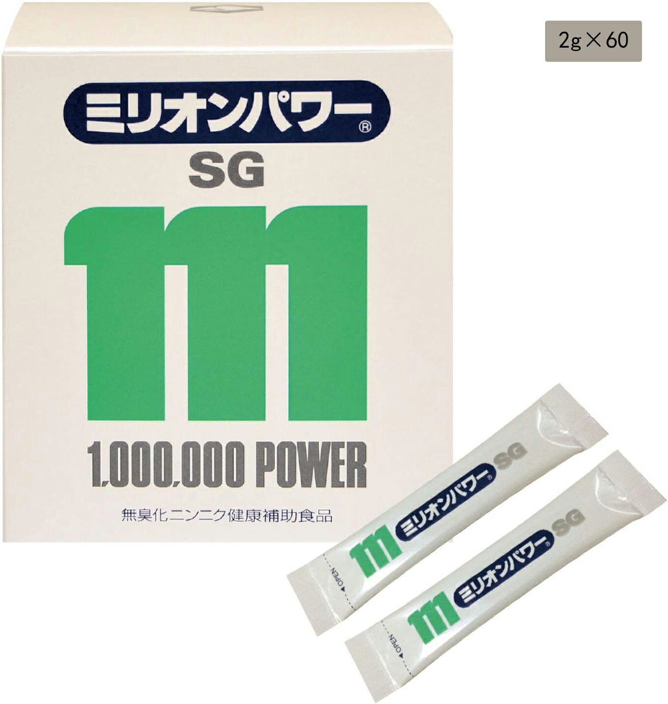 million ミリオン【ミリオンパワーSG 60袋 x 1箱[30日分]】無臭にんにく 栄養補助食品 溶けやすい パウダータイプ《ビタミンB1 ビタミンB2 ビタミンB6ビタミンC ビタミンB12配合》〔スタミナをつけたい方 食欲がない方 離乳食 介護食にも〕 健康食品