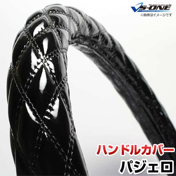 ハンドルカバー パジェロ エナメルブラック M 「ステアリングカバー 日本製 内装品 三菱 MITSUBISHI」