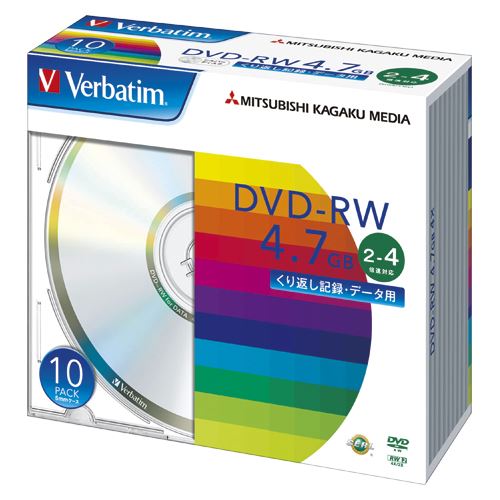 ●買う前も、買った後も、困ったときは、三菱化学メディア カスタマーサービス室にお電話を。フリーダイヤル0120-34-4160 携帯可。月~金 10時~12時 13時~17時●品種:データ用DVD-RW●容量:4.7GB●レーベル:シルバー●規格:-RW / 容量(GB):4メーカー:Verbatim型番:DHW47Y10V1●種類/DVD-RW●容量/4.7GB●仕様/2-4倍速対応、PCデータ用●ケース/薄型ケース●レーベル/ブランドシルバー●1箱=10枚入