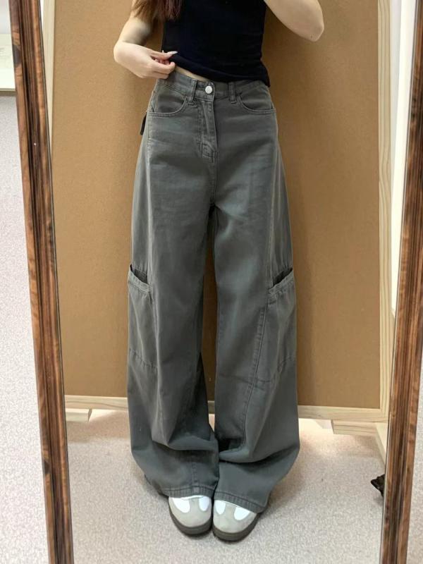 ジーンズ レディース 春秋物 アメリカンレトロ ハイウエスト ゆったり ストレート 美脚 ワイドレッグパンツ デニム ジーパン グレー系