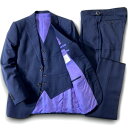 OHGA 大賀 日本製 MIYUKITEX 織生地 ウール100% 2B ノータック 3ピース シングルスーツ ジャケット ベスト ジレ スラックスパンツ 188C6824 ネイビー YL▲100▼20211k04