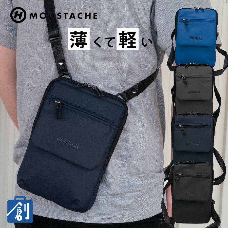 【ポイント最大10倍 12/4 19:59まで】MOUSTACHE/ムスタッシュ ショルダーバッグ メンズ/レディース コーティングポリ ブラック/ネイビー/グレー/ブルー/レッド 小さめ MJT-4573