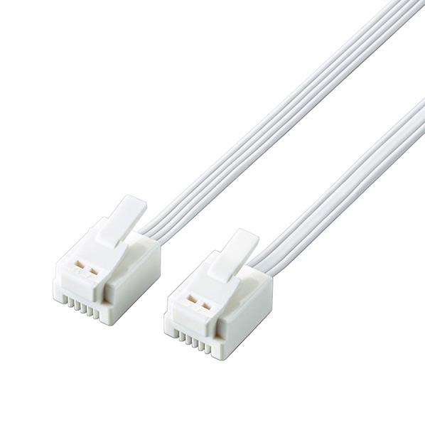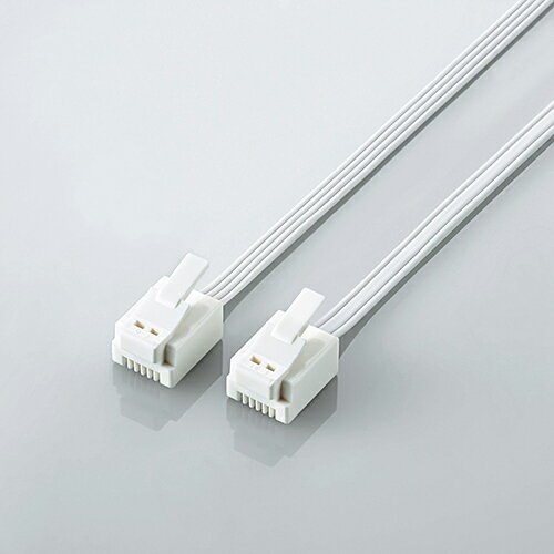 [エレコム ツメ折れ防止モジュラーケーブル(5m) MJ-T5WH]の商品説明●モジュラーコンセントと家庭用電話機・ビジネスホン・FAX・モデムなどを接続できる6極4芯タイプのモジュラーケーブルです。●屈曲に対する耐久性が高い新素材を採用し、通常の使用環境では絶対にツメが折れないモジュラーケーブルです。※1000回の屈曲検査に合格(エレコム社検証)。●ツメ折れによるケーブルの脱落が防げ、長期にわたってしっかりとモジュラージャックに固定することができます。●NTT仕様準拠の6極4芯タイプです。6極2芯の機器にも使用可能です。※NTT仕様に準拠していない機器には使用できません。●せまい所でも配線しやすく、取り回ししやすいスリムケーブルです。[エレコム ツメ折れ防止モジュラーケーブル(5m) MJ-T5WH]のスペック●インターフェイス:モジュラプラグ(6極4芯)●結線方式:NTT仕様準拠※NTT仕様に準拠していない機器には使用できません。●爪の折れないコネクタ:○●パッケージ形態:ブリスタ+台紙●環境配慮事項:EU RoHS指令準拠●材質:外部シース(被膜)/PVC●ケーブル太さ:幅4mm×厚1mm●ケーブル長:5m○返品不可対象商品