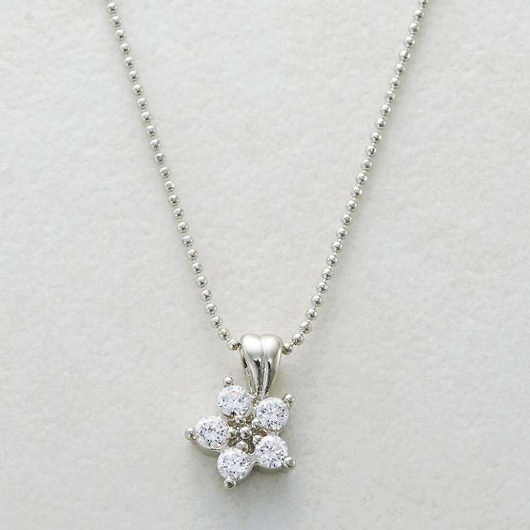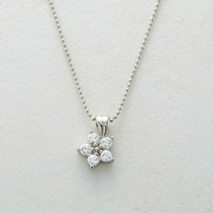 花をデザインにキュービックジルコニアの優しい輝きが上品なイメージを与えるペンダントです。真鍮(銀色メッキ)、キュービックジルコニア全長約45cm(アジャスター約5cm含む)、トップ:約1.6×1cm【代引きについて】こちらの商品は、代引きでの出荷は受け付けておりません。【送料について】北海道、沖縄、離島は送料を頂きます。