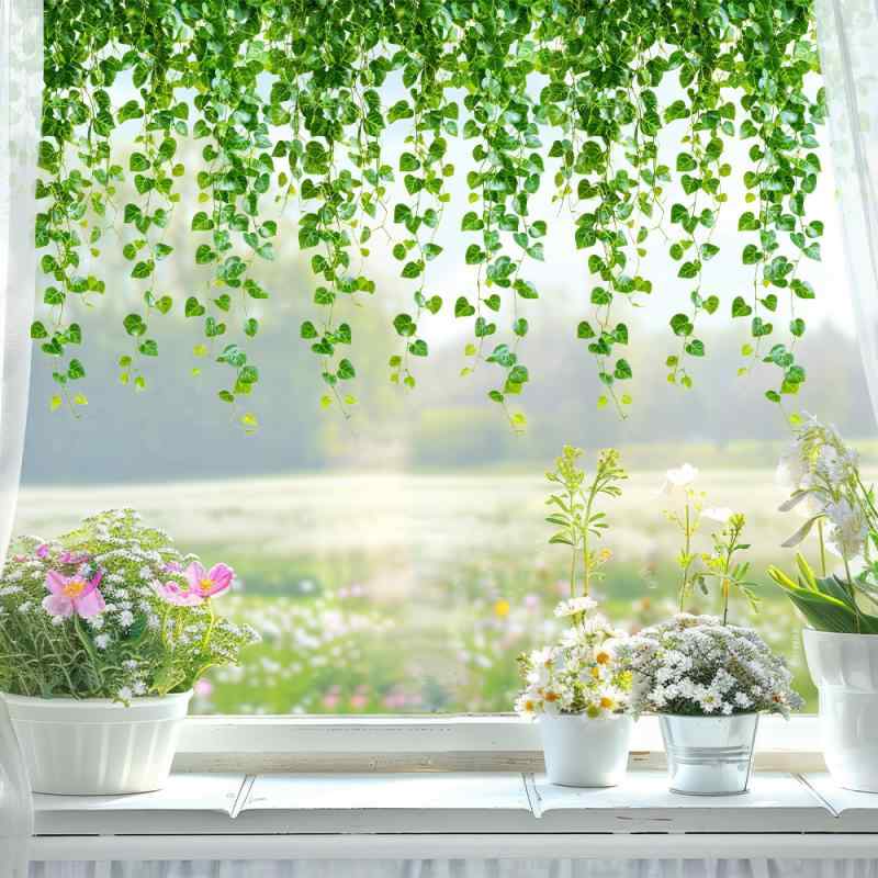 窓用フィルム 接着剤不要 静電吸着 貼り直しOK 目隠しシート 爽やか ツタ柄 ボタニカルデザイン バルコニー 窓 リビング 寝室 賃貸OK PVC製 おしゃれ モダン シンプル(x2)