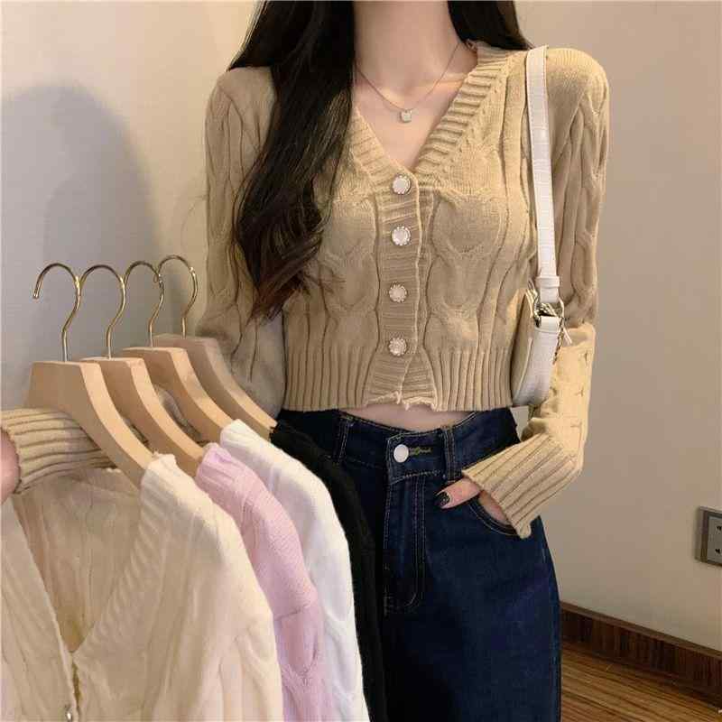 ・カテゴリ: ニット・素材: ポリエステル・柄: 無地・厚さ: 中・スタイル: プルオーバー・シルエット: スリム・袖丈: 長袖・ネックライン: Vネック・着丈: 短め (40cm超~50cm以下)・カラー: ブラック、ホワイト、杏色、ピンクパープル、カーキ・サイズ: フリー (35kg~60kg相当)・テイスト: 日韓カジュアル、韓国風