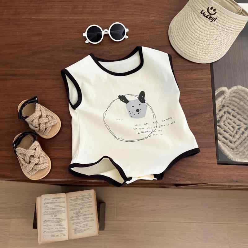 ベビー服 男の子 ノースリーブ ロンパース かわいい イラスト 薄手 夏 韓国風 コットン