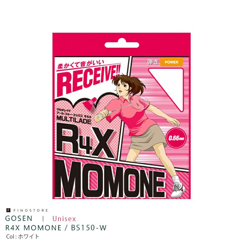 【メール便発送】ゴーセン R4X モモネ (GOSEN R4X MOMONE)BS150 ユニセックス バドミントン ガット ストリング バドミントン用品 BS150 ホワイト ガット ストリング 単張り