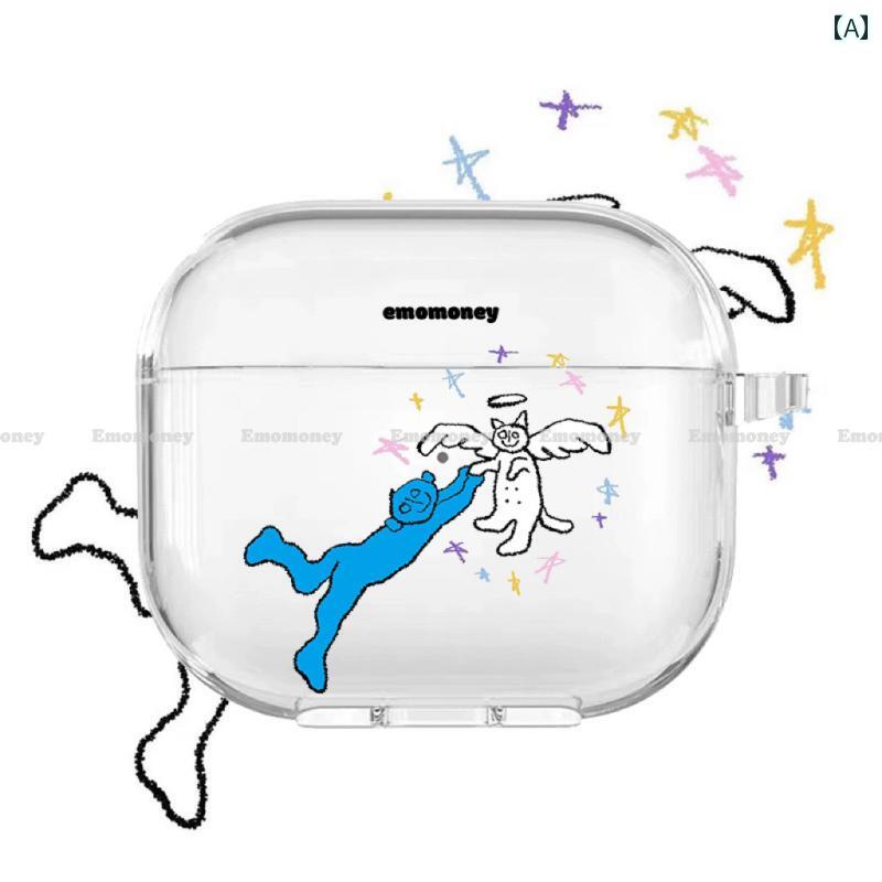 イヤホン Bluetooth コンパクト emomoney * エンジェル キャット イン エア ポッド プロ 保護 ケース 4 アップル イヤホン カバー 2第 2世代 TPU 透明 ソフト ケースに 適合