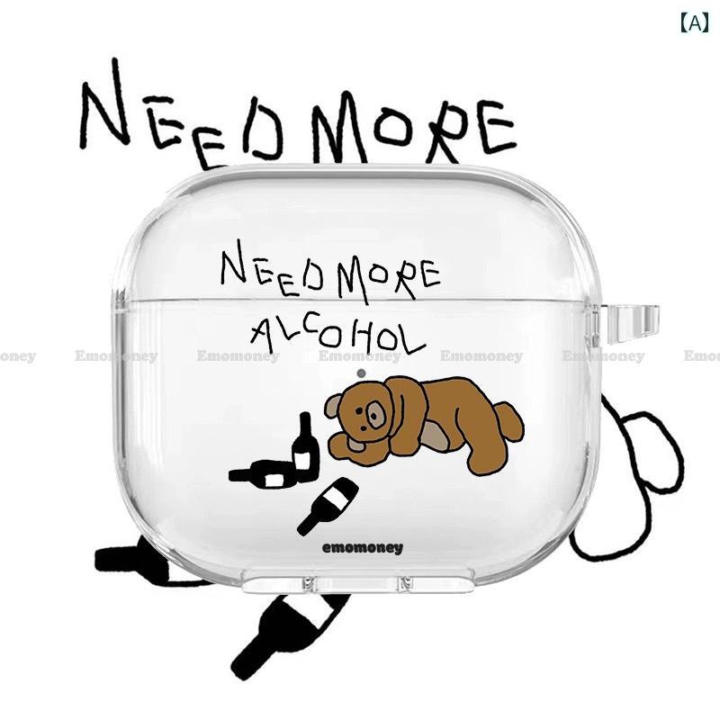 イヤホン Bluetooth コンパクト emomoney *お 酒が 必要な クマは AirPods 4世代 保護 ケース 3 Apple イヤホン カバー 2第 2世代 TPU 透明 ソフト ケースに 適しています