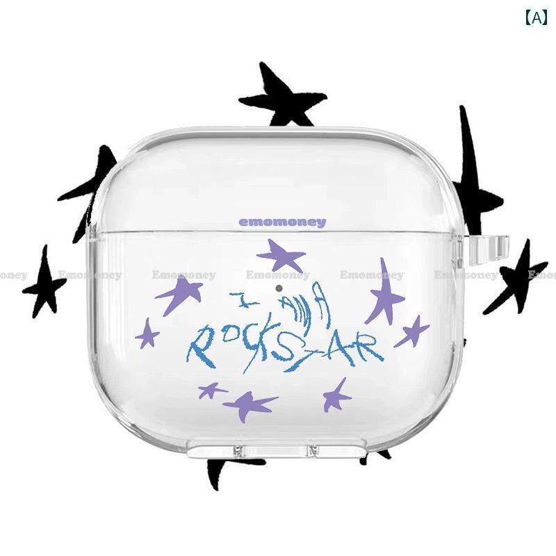 イヤホン Bluetooth コンパクト emomoney * ロック 回転 星 AirPods 4世代 保護 ケース 3 Apple イヤホン カバー 2第 2世代 TPU 透明 ソフト ケースに 最適