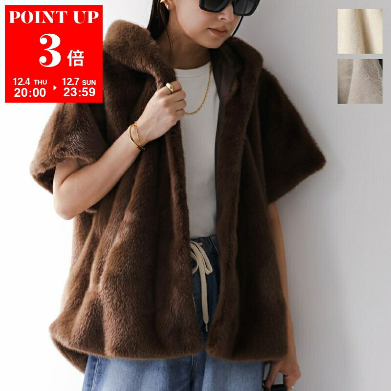 MONiLE モニーレ ファーベスト 040237 レディース フェイクファー ミンクライク フード フーデッド ジレ カラー3色
