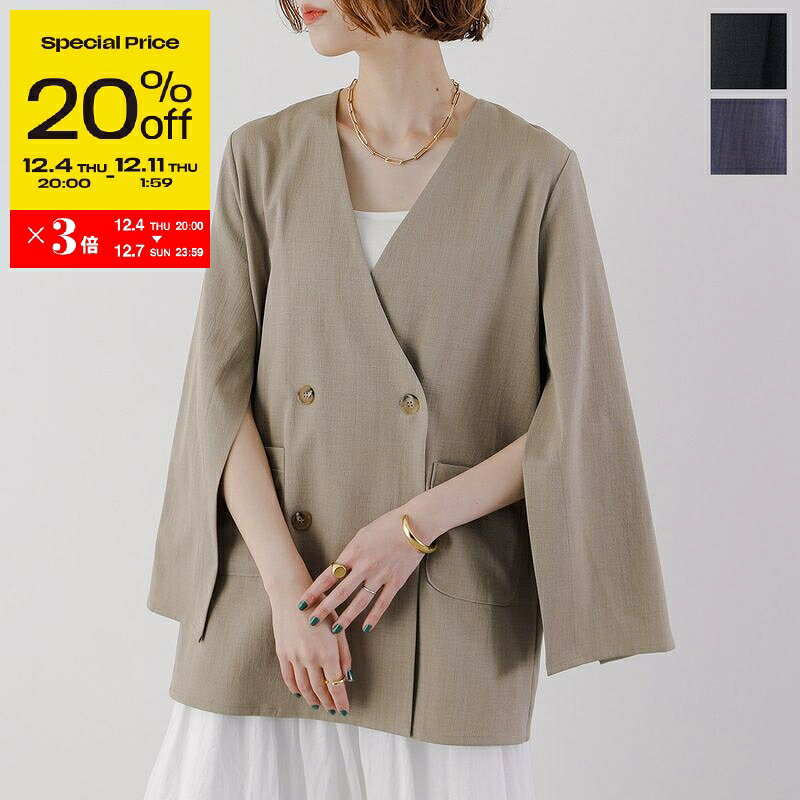 【スーパーSALE20%OFF・12/4-20時~】MONiLE モニーレ ジャケット 002751 レディース ダブルブレスト スリット ノーカラー 長袖 カラー3色【ss_twen】