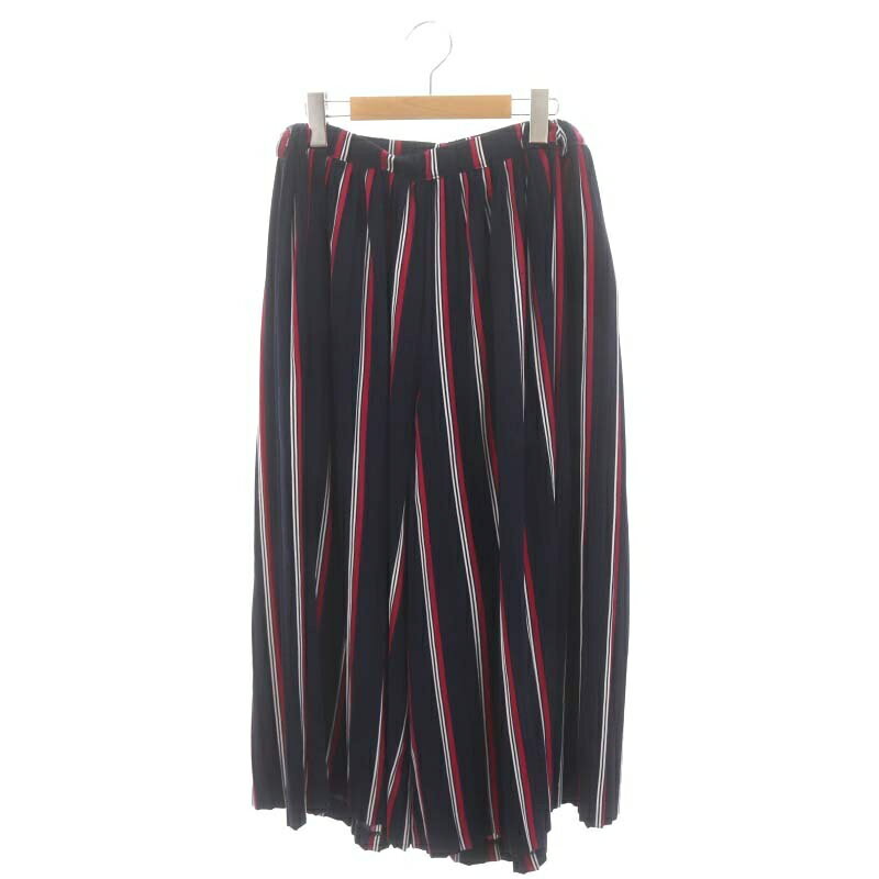 【中古】モニーレ MONILE ベルベットストライプワイドパンツ フレア プリーツ 紺 チェリーレッド 白 /DO ■OS ■SH レディース 【ベクトル 古着】 240513