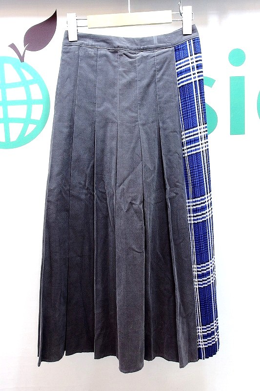 【中古】【MoNiLE モニーレ】 タグ付き コーデュロイ×チェック 切替スカート F グレー×ブルー kz4424198870
